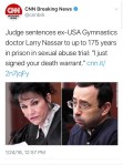 The judge who sentenced this sexual predator is Rosemarie Aquilina. Larry Nassar abused over 150 women, including Gabby Douglas, Simone Biles, and Aly Raisman. Judge Rosemarie made sure this predator pays the price for each and every one of them. Hella props to this badass judge. Judges around the world need to take notes.