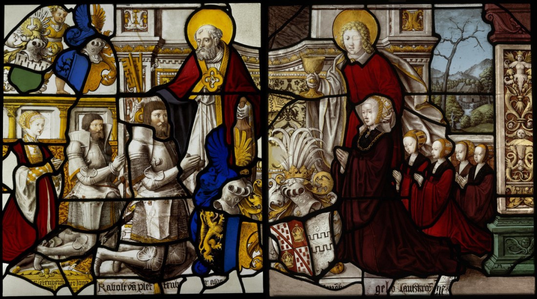 ab.1522-1526 Everhard Rensig, Gerhard Remisch – Rabold von Plettenberg and his son and daughter-in-law with St Peter + Margaretha von Eynenberg-Landskron and her four daughters with John the Evangelist