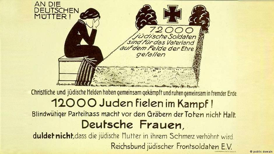 Pictured – A Weimar era poster reminds gentiles of the sacrifices Jews paid for Germany during the war: “12,000 Jewish soldiers died on the field of honor for the fatherland.