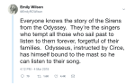cuilpantielthesleepyscribe Uncategorized 31st Aug 20183rd Dec 2018 1 Minute badcode: Emily Wilson on translating The Odyssey Share this: Share on X (Opens in new window) X Share on Facebook (Opens in new window) Facebook Like Loading... Related Published by cuilpantielthesleepyscribe View all posts by cuilpantielthesleepyscribe Published 31st Aug 20183rd Dec 2018