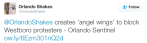 When a handful of Westboro Baptist Church members showed up Saturday at the funeral of Orlando shooting victim Christopher Leinonen, counterprotesters donning large, white angel wings were there to shield mourners. Members of the Orlando Shakespeare Theater put together the wings as a symbolic but also literal screen between the WBC and funeral attendees. An Orlando Police tweet later proved the efforts to stop the WBC worked.
