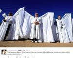There’s a reason this was undertaken by a theatre company. It means they knew The Laramie Project. It means they knew that the idea for the angel wings came from their use to block the WBC at the funeral of Matthew Shepard, a gay college student who was murdered in Wyoming in 1998.
