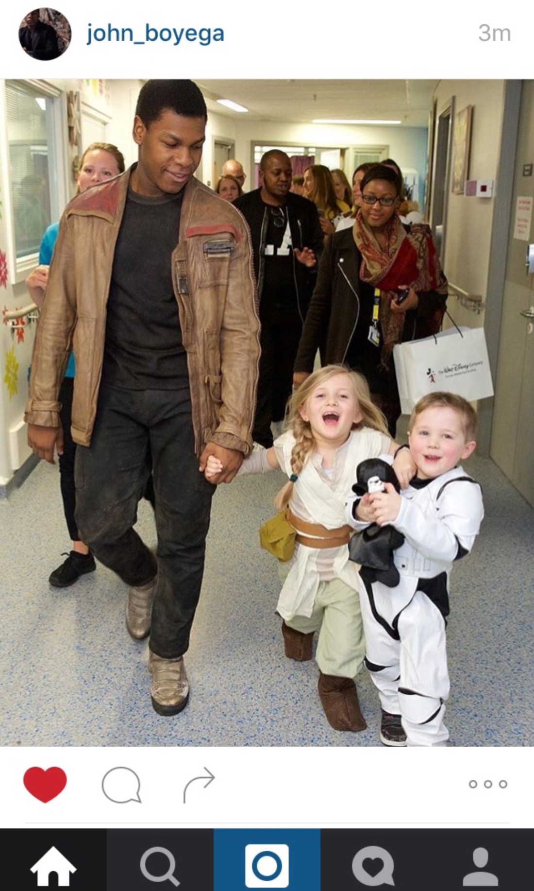 The little boy (whose name escapes me) has a brain tumor. He wanted to meet Finn, but he didn’t want him to himself. He wanted Finn to visit with all the kids at the pediatric ward. John stayed in character the ENTIRE time and he taught Finn about all kinds of Earth things.